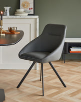 Thoughtfully designed for real life, the Carter 6 seater dark grey ceramic dining table with 6 Cleo swivel dark grey leather II dining chairs brings sophisticated comfort to every gathering. The sleek ceramic table resists daily wear whilst the pedestal base provides generous legroom. Six swivel chairs in sumptuously soft faux leather ensure everyone stays comfortable, from quick breakfasts to dinner parties that run late.