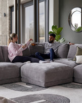 Thoughtfully designed to complement the Casey corner sofa, this mid grey chenille fabric footstool brings effortless comfort to your living space. The luxuriously soft chenille upholstery invites you to put your feet up, while the generous proportions make it perfect as extra seating when friends gather. Its versatile square shape works beautifully in both spacious living rooms and cosy snugs.