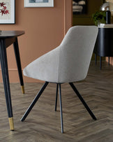 The Cleo grey boucle swivel chair brings smart functionality to dining and home office spaces. Its 180-degree swivel with self-return mechanism makes it perfect for busy workdays or lively dinner conversations. Upholstered in luxuriously soft boucle fabric, this chair offers lasting comfort with its cushioned seat, while sleek metal legs complete the contemporary look.