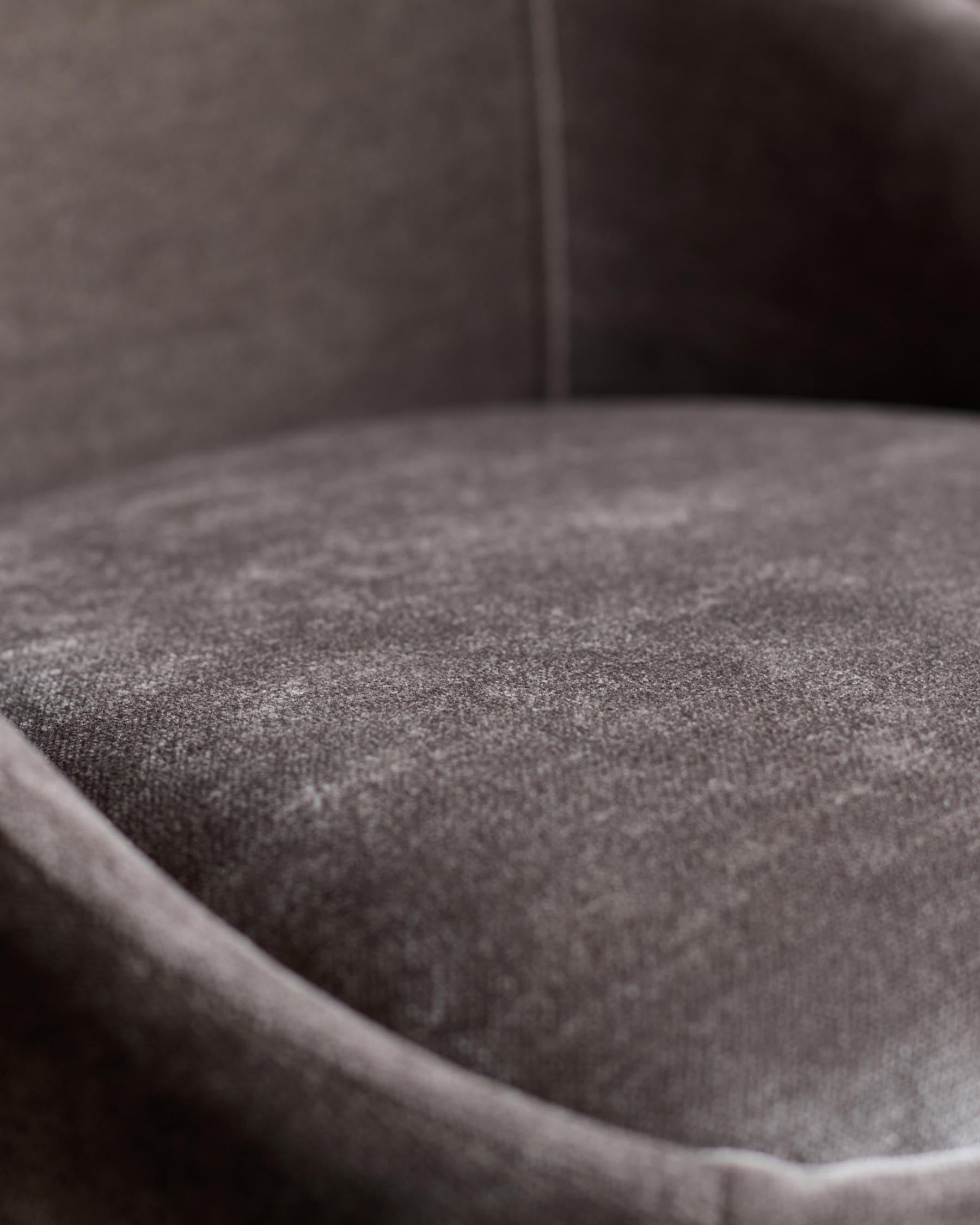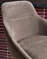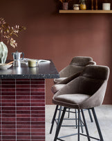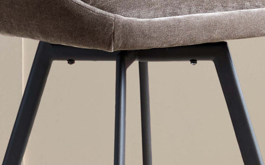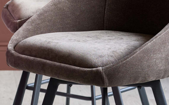 The Cleo mocha fabric swivel bar stool brings sophisticated comfort to your breakfast bar or kitchen island. With its 180-degree swivel mechanism and built-in return function, it's perfect for busy mornings and sociable evenings alike. The soft chenille fabric in warm mocha tones pairs beautifully with the sleek black powder-coated base, creating a piece that works seamlessly in contemporary and classic spaces.