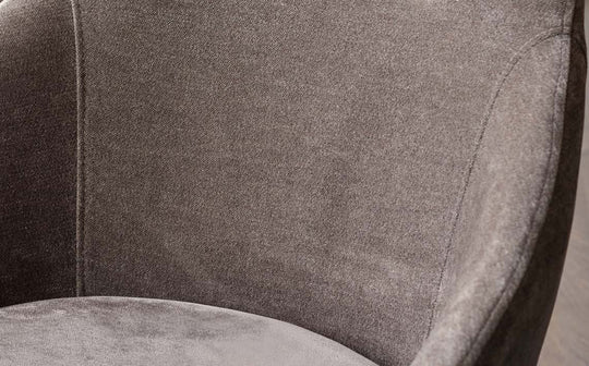 The Cleo mocha fabric swivel dining chair brings together comfort and contemporary style for those long dinner conversations. Upholstered in soft chenille fabric with a warm mocha tone, this chair features a 180-degree swivel mechanism with built-in return, making it perfect for open-plan dining spaces where movement matters.