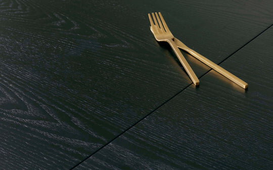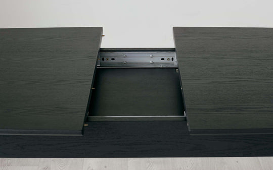 Transform your dining space with the Clover Black Ash extending dining table - where mid-century modern meets contemporary sophistication. This versatile piece effortlessly extends from 6 to 8 seats, making it perfect for intimate dinners and larger gatherings alike. The striking black ash finish paired with metallic capped legs creates a designer aesthetic that anchors any dining room or open-plan kitchen with style.