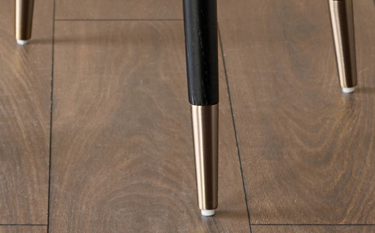 - Brushed bronze metallic caps and footrest