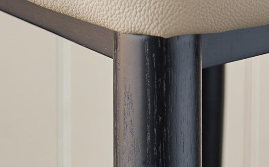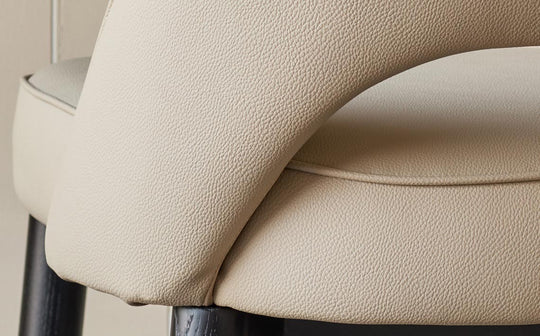 The Clover natural faux leather bar stool brings relaxed sophistication to kitchen islands and breakfast bars. Crafted with cushioned comfort and a gently curved backrest, it's perfect for morning coffee or evening conversations. The neutral cream tone works beautifully with both wooden and contemporary interiors, while sturdy dark wood legs with stainless steel caps add a refined touch.