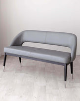 Thoughtfully designed for gatherings that matter, the Clover mid grey faux leather dining bench brings vintage charm to modern living. Its distinctive cut-out back detail and curved backrest offer comfort for up to 3 people, while brushed stainless steel capped legs add contemporary sophistication. Perfect alongside your dining table or as a stylish hallway statement piece.
