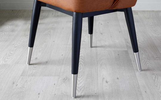 - Black ash wood legs with brushed metal caps