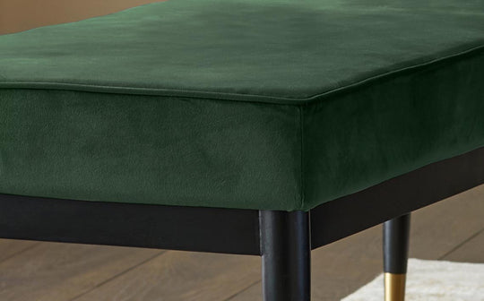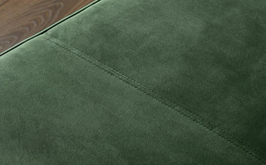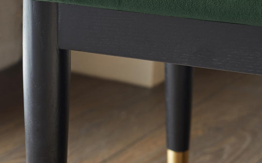 The Clover dark green velvet bench brings sophisticated seating to your dining space without the formality of a traditional chair. Upholstered in sumptuous dark green velvet with generous cushioning, this backless design seats up to 3 people comfortably. Its clean lines and tapered ash wood legs create versatile style that works beautifully at your dining table or as an elegant accent in hallways and bedrooms.