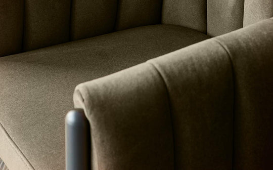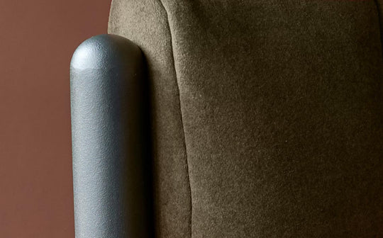 - Olive green recycled velvet upholstery
