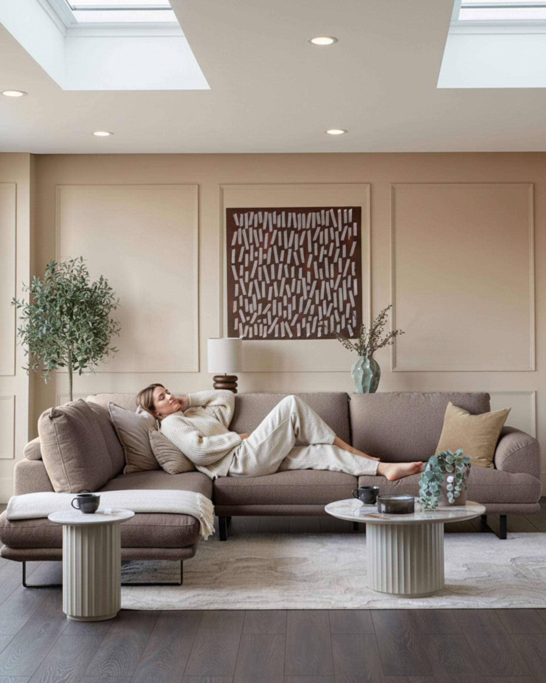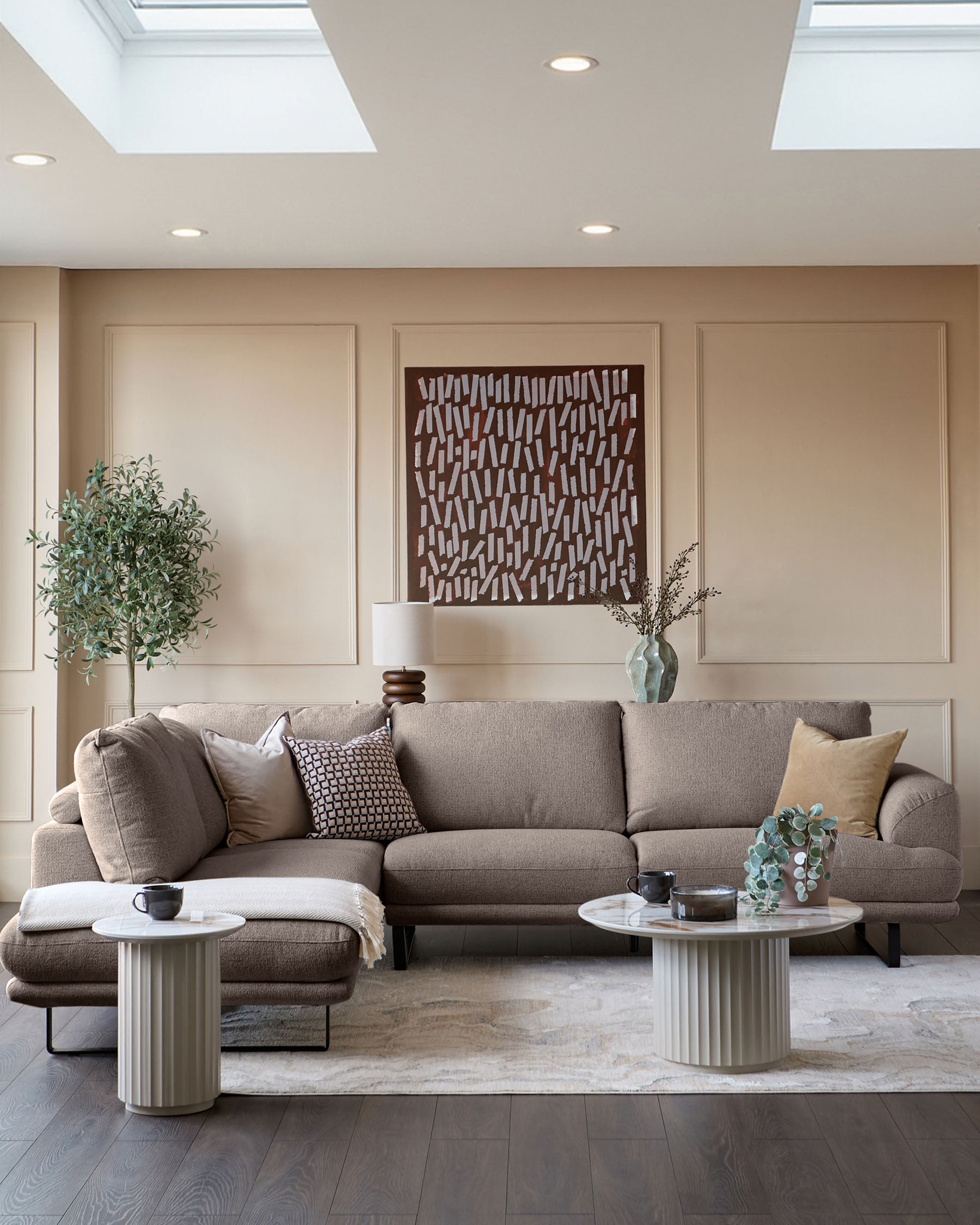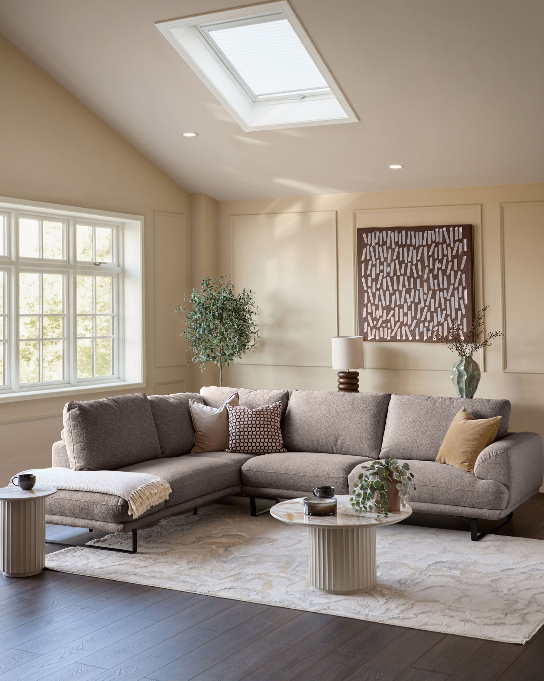 The Colette sofa in Mink plush chenille brings a soothing, understated luxury to your living space. Its left-hand configuration creates an inviting shape, perfect for gatherings and the quieter pauses of everyday life. Designed with intention, the integrated armrest flows seamlessly into the seat cushion, giving Colette its signature sculpted look. High loop-style legs create a floating appearance, lifting the sofa visually and adding elegant lightness. The plush chenille upholstery is beautifully soft with durability that stands up to real-life behaviour. Crafted in small, carefully planned runs, each piece offers the balance of function and beauty that defines our collection. Built to last and made to live with, Colette transforms the room with effortless grace.