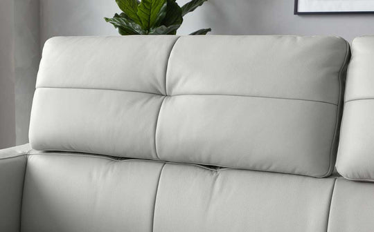 The Colton 2 seater sofa brings sophisticated comfort to your living space with its luxurious natural grey leather upholstery and contemporary loft-style design. Sink into plush foam and fibre-filled cushions while adjustable headrests provide personalised support for reading or relaxing. Classic detailing along the seams and subtle button accents create a refined centrepiece perfect for modern interiors.