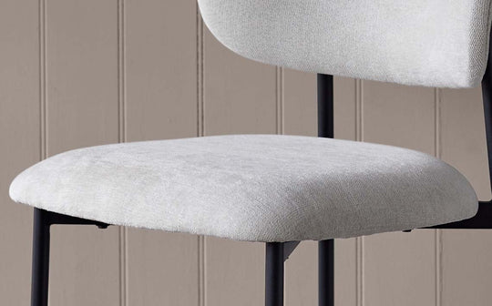 The Cree cream fabric bar stool brings sophisticated comfort to your breakfast bar or kitchen island. With its luxurious chenille upholstery, wooden frame detailing and sleek black metal legs, this fixed-height stool creates the perfect perch for morning coffee or casual dining. The high-quality foam filling ensures lasting comfort while built-in floor protectors keep your floors pristine.
