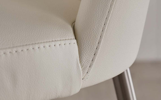 The Deco white real leather dining chair brings everyday luxury to your dining space. Crafted with genuine leather and a generous, encompassing seat design, these chairs offer exceptional comfort for long dinner parties and lazy Sunday brunches. The sleek stainless-steel legs and clean lines create a sophisticated look that works beautifully with both modern and traditional tables.