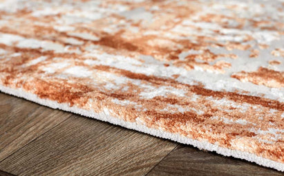 The Distressed Border rust textured large rug brings sophisticated hotel style straight to your living space. This beautifully textured piece features an abstract, distressed design in warm rust and cream tones that anchors any room with understated elegance. Perfect for high-traffic areas, its durable synthetic fibres and low-pile construction mean it's as practical as it is stylish.