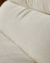 - Soft ivory boucle fabric with rich texture