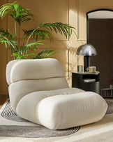 The Elijah ivory boucle accent chair brings relaxed sophistication to any room with its low-slung, rounded silhouette and inviting cushions. Upholstered in soft, textured boucle fabric, this generously proportioned chair creates an instant focal point. Perfect for creating a cosy reading corner or adding laid-back luxury to living rooms, bedrooms, or home offices.