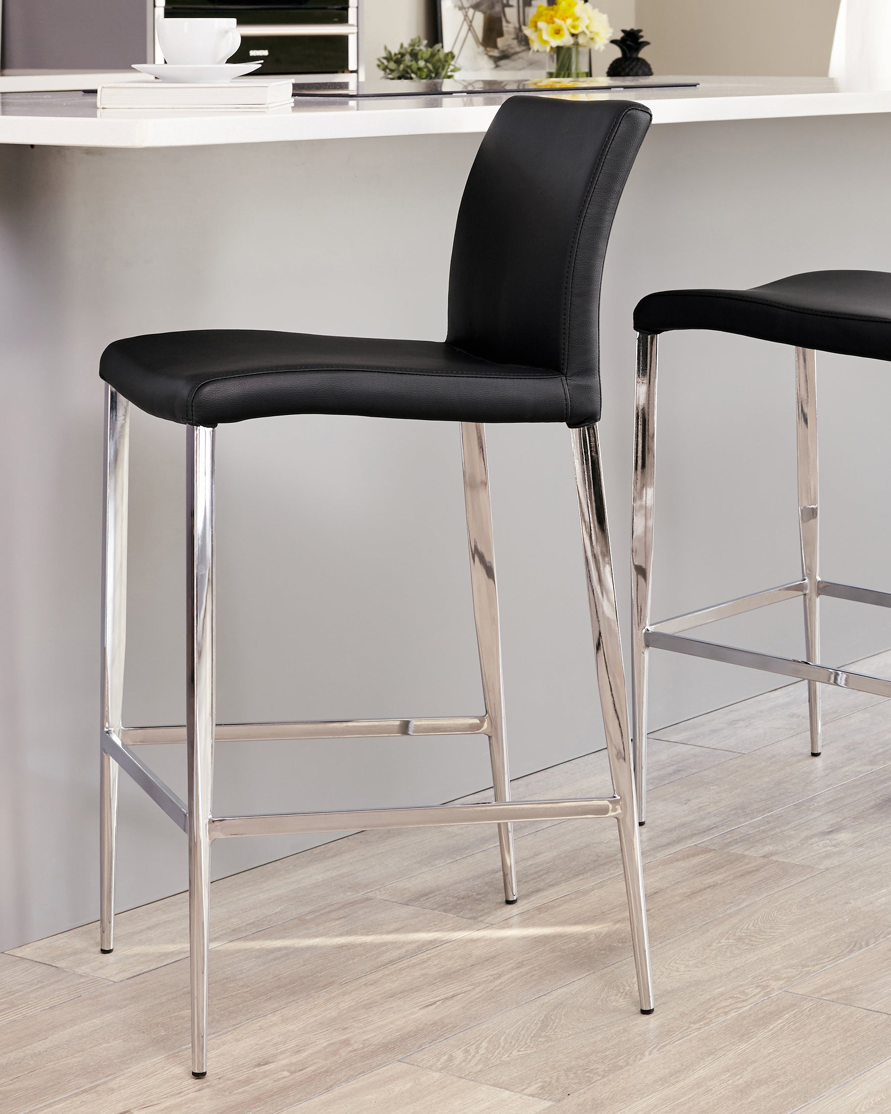 Explore our range of bar and counter stools, where style meets comfort through a fusion of modern design and luxurious materials. Whether upholstered in sumptuous velvet or premium faux leather, our bar stools offer a distinct look that enhances any contemporary setting.