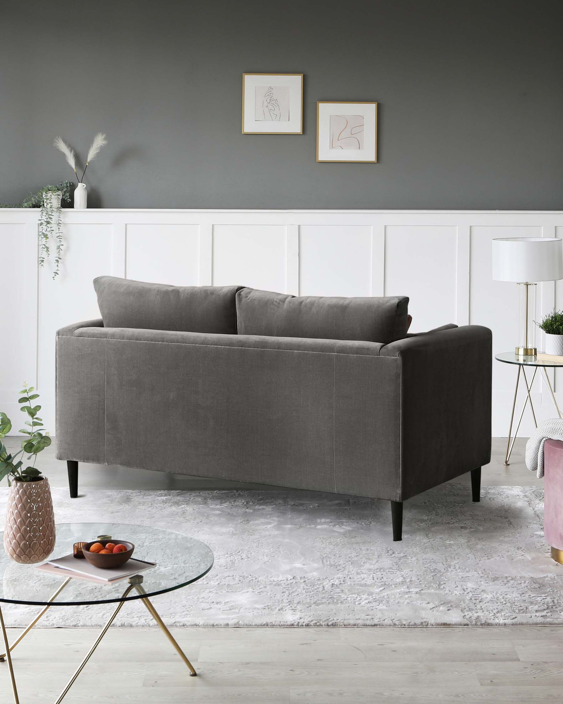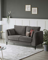 The Elsie II 2-seater sofa offers a modern and sophisticated centrepiece for your living room. Upholstered in a luxurious mid-grey fabric, this sofa invites relaxation with its comfortable and supportive design. The chenille fabric adds a touch of subtle texture, while the foam and fibre filling provides a comfortable sit. Removable cushions offer practicality and ease of cleaning. Style the Elsie II with a plush throw and cushions in coordinating colours and patterns to create a cosy and inviting atmosphere. Complete the look with a contemporary coffee table and a sleek sideboard to keep your living space organised. Perfect for modern living rooms or a snug, the Elsie II is designed for both style and comfort.Details