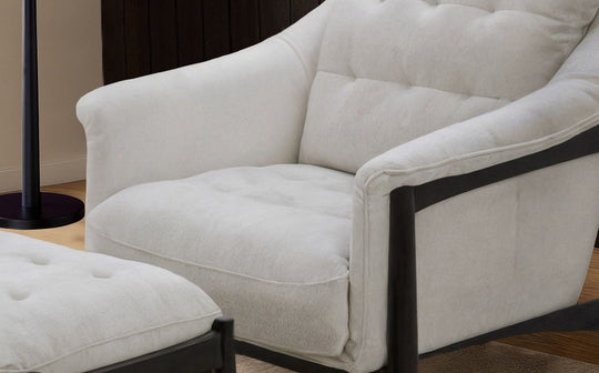 Sink into the Ember natural grey fabric occasional chair with footstool and create your perfect reading corner or quiet retreat. This beautifully crafted set combines soft chenille upholstery with tufted detailing for a look that's both contemporary and timeless. The enveloped armrests and matching footstool invite you to put your feet up and truly relax after a long day.