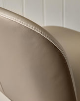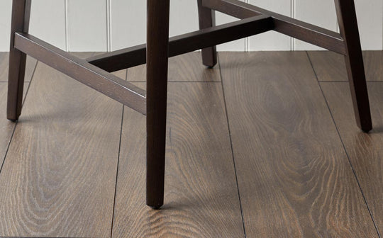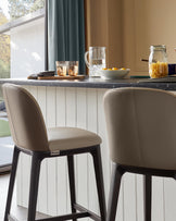 The Emerson natural and mocha leather bar stool brings sophisticated contrast to your kitchen island or breakfast bar. Upholstered in genuine two-tone leather, this fixed-height stool features a distinctive chamfered plinth base and curved edges that soften its architectural lines. The dark wood frame grounds the design whilst built-in floor protectors ensure your surfaces stay pristine.