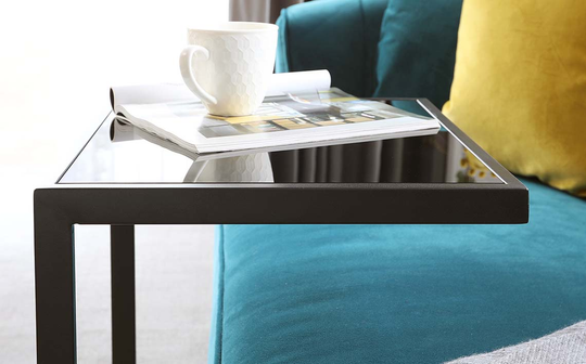 Transform your living space with the Ezra smoked glass tray table - a sleek solution that slides perfectly over sofas and armchairs. Its C-shaped design brings surfaces exactly where you need them, while the dark smoked glass top adds sophisticated style. Perfect for drinks, laptops, or books, this versatile piece works beautifully in living rooms, bedrooms, or home offices.