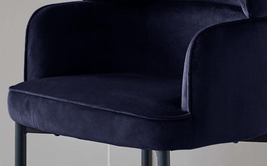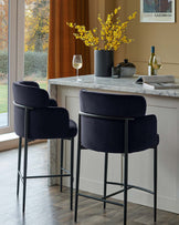 Transform your kitchen island or breakfast bar with the Felix dark navy velvet bar stool. Its sculptural silhouette and sumptuous velvet upholstery create an instant focal point, while the generously padded seat and supportive back make morning coffee or evening drinks a truly comfortable affair. A sophisticated choice for modern homes where style meets function.