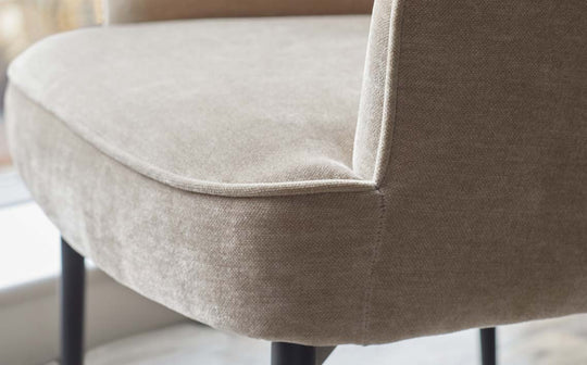 Effortlessly sophisticated, the Felix champagne chenille dining chair brings sculptural style to your dining space. Its unique 3-dimensional structure creates visual interest, while luxurious champagne chenille upholstery invites lingering conversations over dinner. The curved backrest cradles you in comfort, making those long Sunday lunches and dinner parties that run late even more enjoyable.