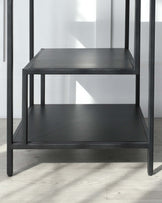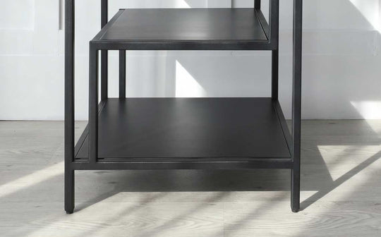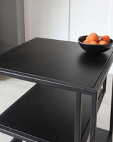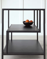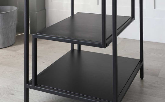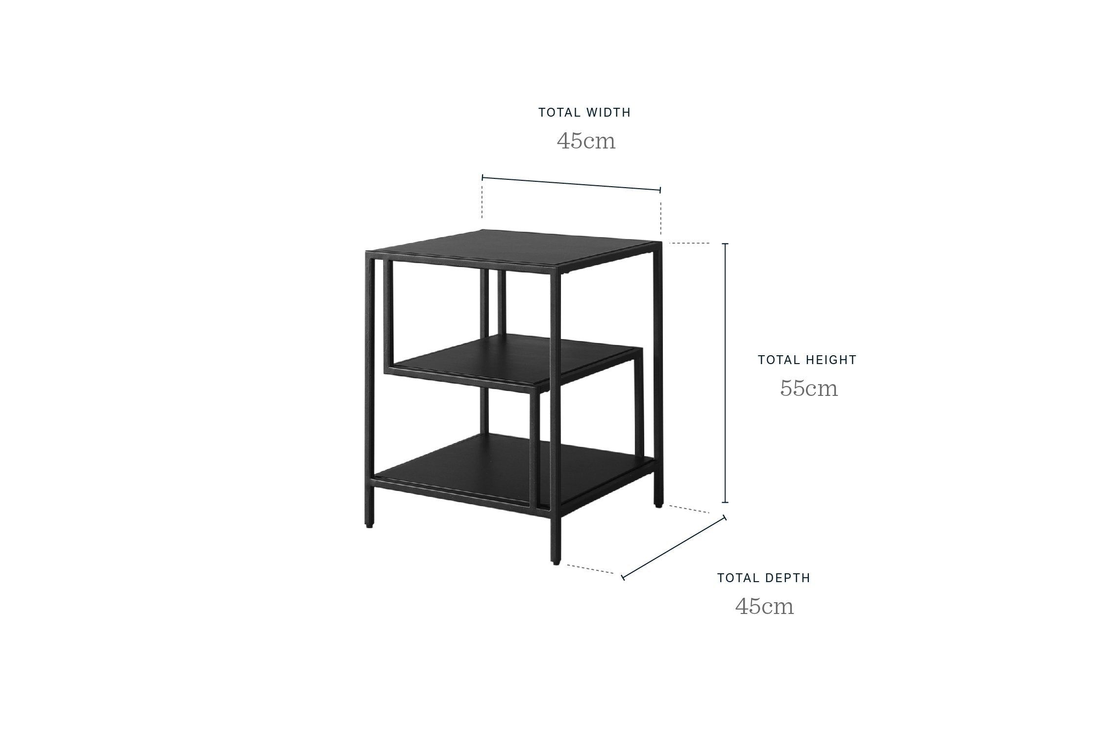 The Finley black metal side table brings understated style to any corner of your home. Its powder-coated steel frame pairs beautifully with oak-finish shelves, creating a piece that's both practical and striking. Perfect beside your sofa for evening essentials or as a bedside companion, this compact table fits seamlessly into modern and industrial spaces alike.