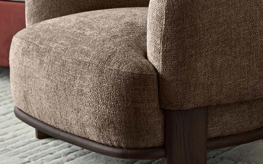 The Florence mocha chunky weave armchair brings refined comfort to your living space with its softly rounded silhouette and generous proportions. Rich mocha fabric in a tactile chunky weave adds warmth and texture, while dark wood legs create an elegant contrast. Perfect for curling up with a book or creating a cosy conversation corner when paired with the matching Florence sofa.