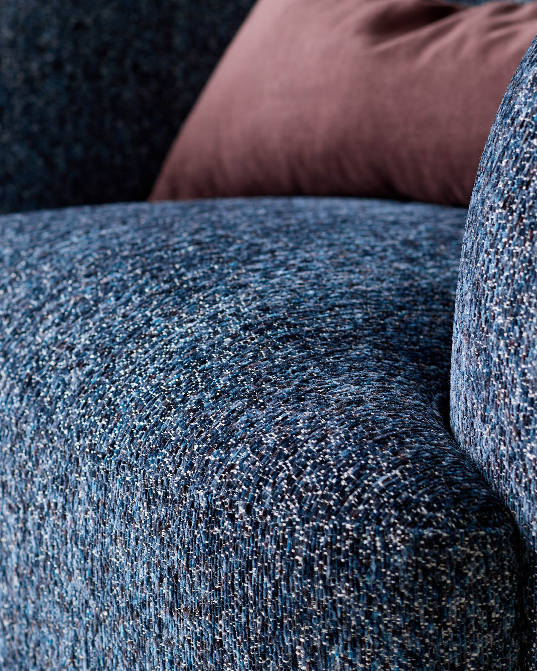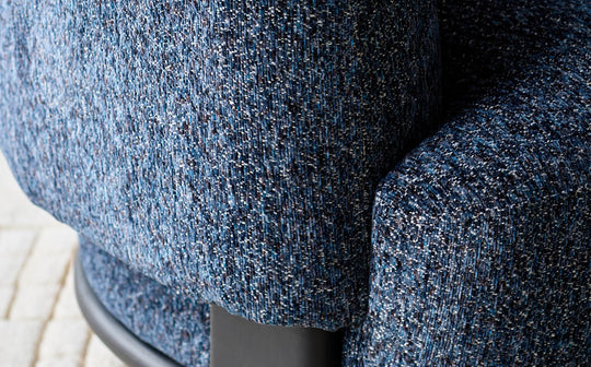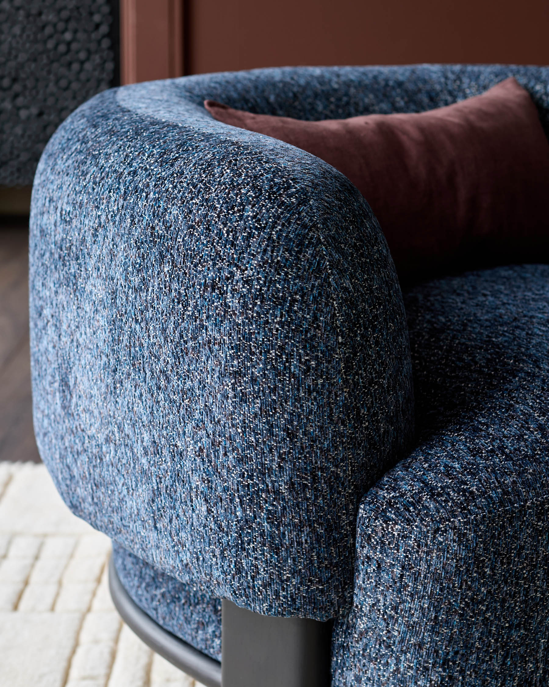 The Florence navy mosaic chenille armchair brings sophisticated comfort to your living space. With its gently rounded silhouette and chunky armrests, this contemporary piece creates an inviting spot for reading, relaxing or catching up with friends. Rich navy chenille fabric adds depth and texture, while black wood legs provide elegant contrast.