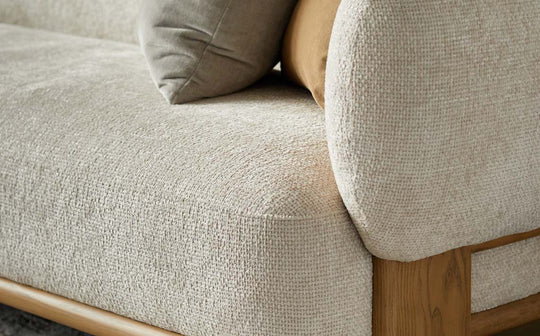 Sink into the Florence armchair and feel instantly at home. Its generous, rounded silhouette and chunky woven fabric in warm natural cream create the perfect spot for afternoon reading or evening conversations. The light wood frame brings Scandinavian simplicity to your living room, bedroom or reading corner, while chunky arms and fixed foam seating offer lasting comfort and support.