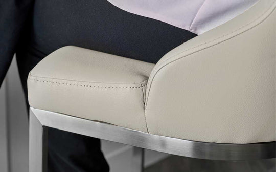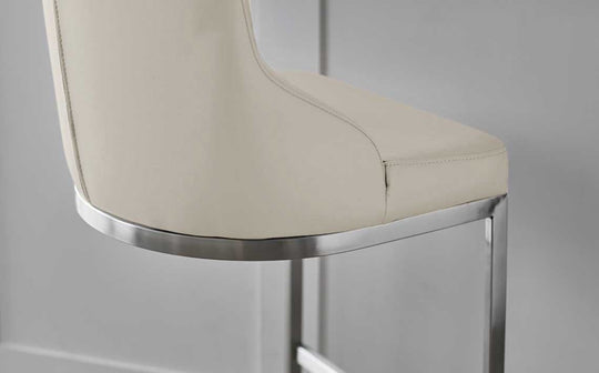 Create a sociable heart to your kitchen with the Form bar stool, where sleek stainless steel meets soft light grey faux leather. Perfect for breakfast bars and kitchen islands, this fixed-height stool offers stable, comfortable seating with its curved backrest and cushioned seat. Sold as a pair, they're designed for those lingering conversations over morning coffee or evening drinks.