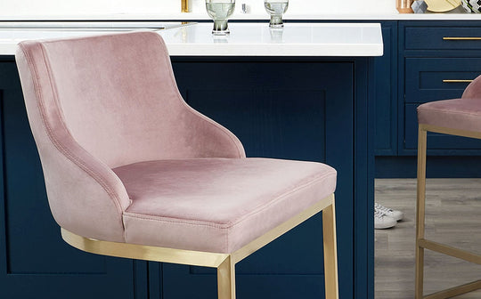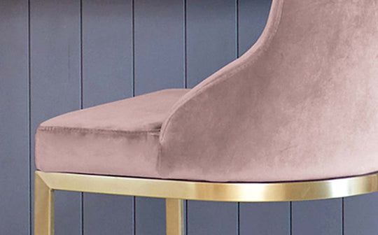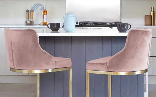 Bring a touch of everyday luxury to your kitchen island or breakfast bar with the Form bar stool. Upholstered in sumptuous blush pink velvet with a sleek brushed brass cantilever base, this sophisticated perch combines comfort with contemporary style. Sold in pairs, these fixed-height stools create a cohesive look that works beautifully against marble or quartz countertops.