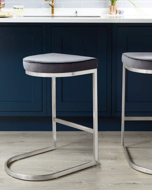 Bring a touch of sophistication to your kitchen island with the Form bar stool, where blush pink velvet meets brushed steel in perfect harmony. This thoughtfully designed piece offers the comfort of a cushioned seat with backrest, making morning coffees and evening gatherings equally enjoyable. Sold in pairs, these fixed-height bar stools are crafted for real life - sturdy enough for daily use, beautiful enough for your best moments.
