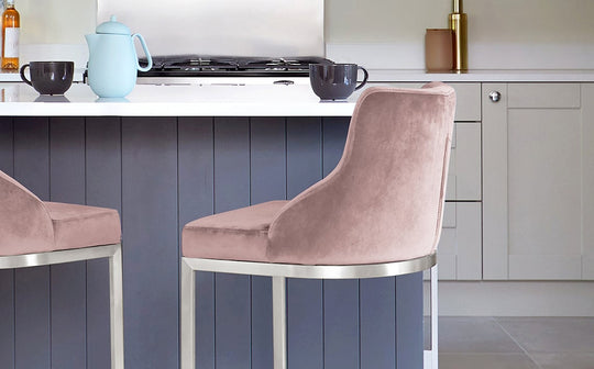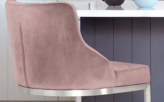 Bring a touch of sophistication to your kitchen island with the Form bar stool, where blush pink velvet meets brushed steel in perfect harmony. This thoughtfully designed piece offers the comfort of a cushioned seat with backrest, making morning coffees and evening gatherings equally enjoyable. Sold in pairs, these fixed-height bar stools are crafted for real life - sturdy enough for daily use, beautiful enough for your best moments.