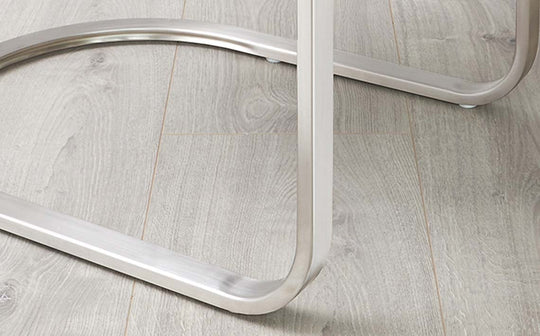 - Modern brushed steel cantilever frame