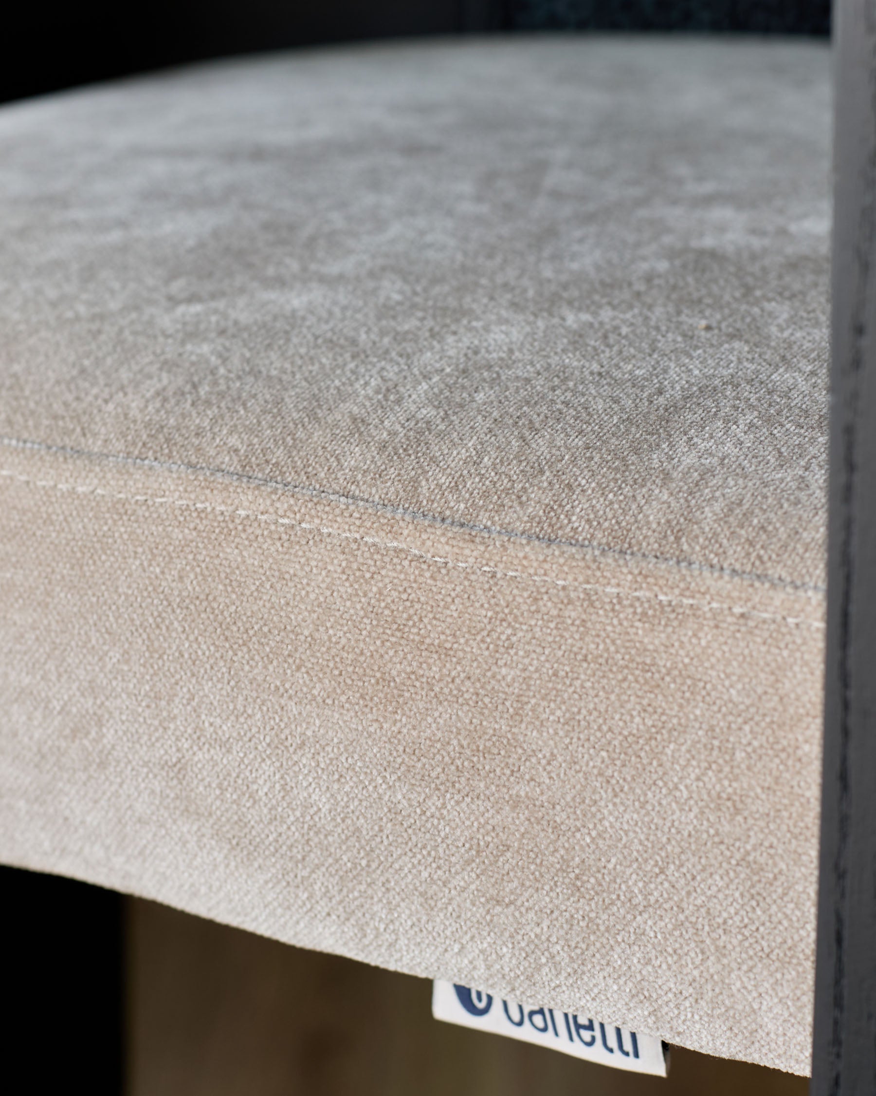 Thoughtfully designed with a sculptural bent wood frame and signature tripod legs, the Garcia champagne chenille black wood dining chair brings refined warmth to your dining space. The soft chenille upholstery and cushioned seat create an inviting place to linger, while the upholstered inner armrest and supportive back height ensure comfort through long dinners and late-night conversations.