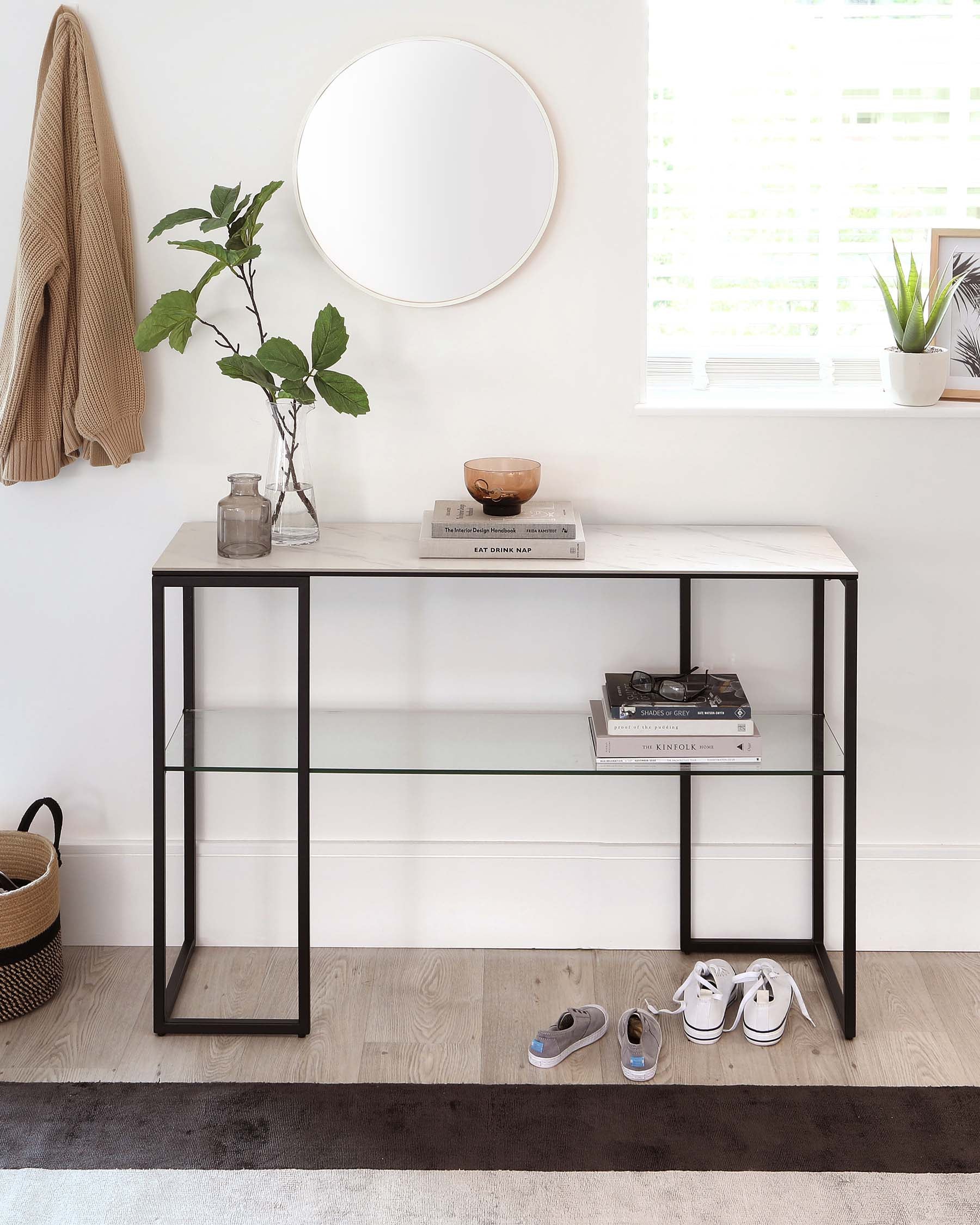 - Where is the best place to put a console table in my home?Console tables are versatile pieces that fit beautifully in various spaces. A popular choice is placing one in the hallway, offering a practical spot for keys and mail while adding a decorative touch. In a living room, a console table can sit behind a sofa, displaying lamps, books, or decorative objects. They also work well in dining rooms as a sideboard for serving dishes or in bedrooms as a stylish dressing table. Consider the available space and the console table's intended function when choosing a location. Even in smaller spaces, a narrow console table can provide valuable surface area without feeling bulky.
