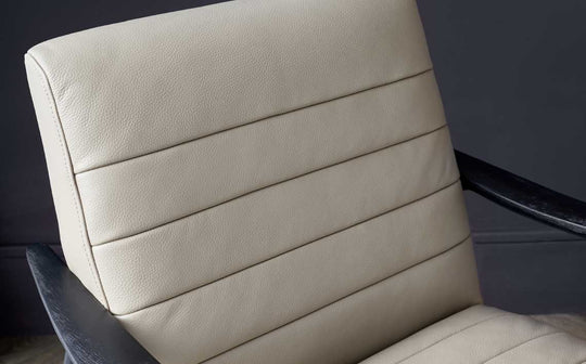 Thoughtfully designed with a contemporary twist on mid-century style, the Greyson natural leather accent chair brings warmth and sophistication to any room. Genuine leather upholstery in a neutral tone pairs beautifully with the matt black wooden frame, while subtle fluting detail adds understated elegance. Perfect for creating an inviting reading nook or adding accent seating to your living space.