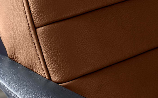 - Genuine tan leather upholstery with subtle fluting