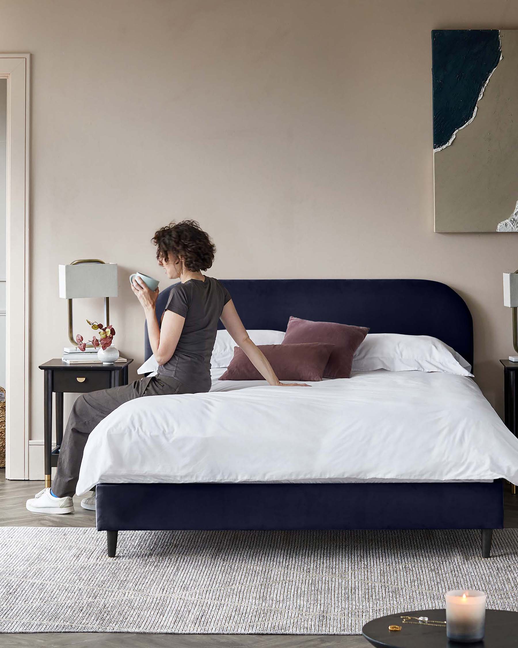 Effortlessly sophisticated, the Hampton dark navy velvet king size bed brings understated elegance to your bedroom. Upholstered in luxurious recycled velvet, this thoughtfully designed piece features clean lines that work beautifully with any interior style. The rich navy tone creates a calming sanctuary, while the sturdy frame with sprung slats ensures lasting comfort for years of restful nights.