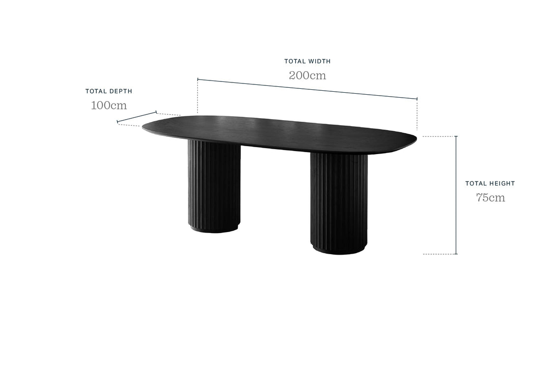 The Hanne black oak 6 seater dining table brings sculptural sophistication to your dining space. Its striking double-pillar pedestal base creates an architectural focal point, while the spacious 200cm black oak top comfortably seats 6. Perfect for dinner parties that run late or relaxed Sunday lunches with room for everyone to gather round.