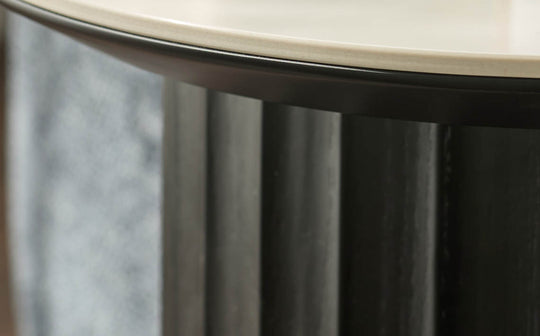 The Hanne white ceramic side table brings sculptural sophistication to any room with its striking contrast of glossy white ceramic and deep black pedestal base. Perfect beside a sofa or armchair, this compact piece offers both style and practicality - its heat and scratch-resistant ceramic top handles everything from morning coffee to evening drinks with ease.