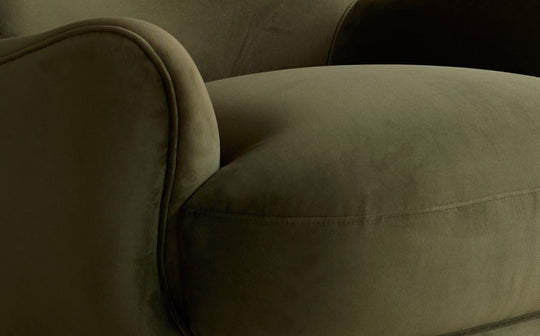 The Harlan olive green velvet accent chair brings timeless sophistication to any room. With its high winged back and rich velvet upholstery in soft olive green, this chair creates an inviting spot for reading, relaxing or adding character to your space. Built with fixed foam seating and zig-zag springs for lasting comfort.