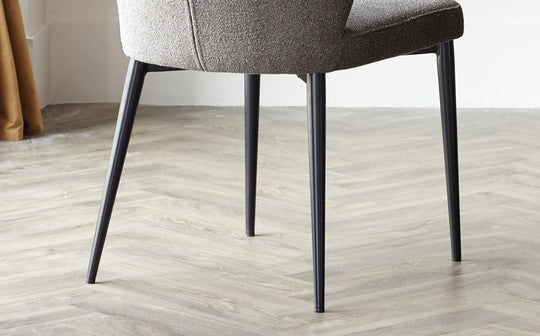The Harper dining chair brings sculptural sophistication to mealtimes with its distinctive scallop shell back. Upholstered in warm grey soft-touch boucle fabric, these chairs offer luxurious comfort alongside contemporary style. The black powder-coated steel legs provide sturdy support while built-in floor protectors keep your floors pristine. Sold in pairs for coordinated dining.