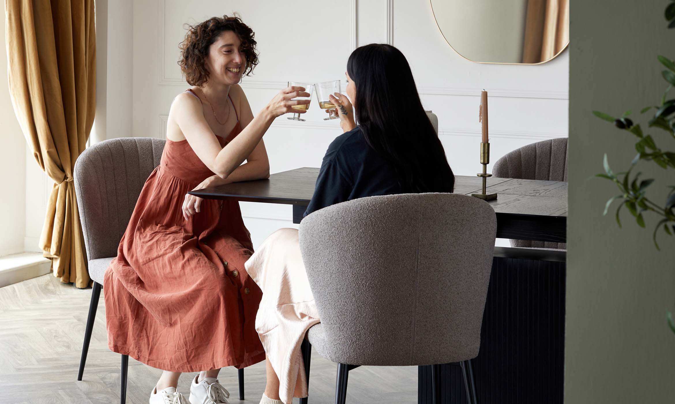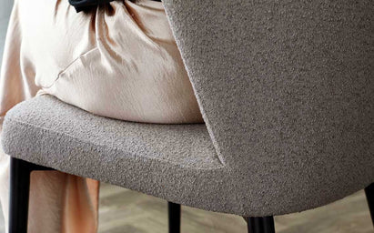 The design of the chairs ensures a feeling of comfort and luxury with the wrap around chair back and deep seat pad. I chose the boucle version in Warm Grey which immediately brought a feeling of luxury and comfort to our dining area.