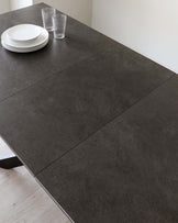 Transform your dining space with the Hayden dark grey ceramic extending dining table - a statement piece that effortlessly accommodates 8 to 10 guests. This exclusive Danetti design combines a sleek ceramic top with a dramatic starburst pedestal base, creating the perfect setting for intimate family meals and larger gatherings alike. Built to handle real life with heat and scratch-resistant surfaces.