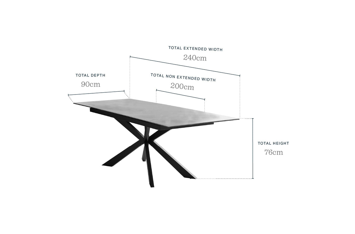 - Size: 200-240cm (extends) x 90cm x H76cm