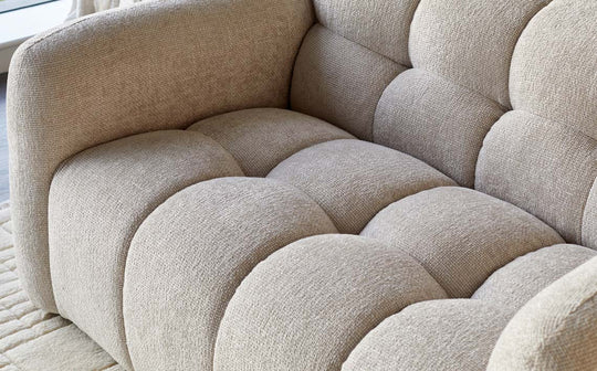 The Hayes 3 seater sofa brings relaxed sophistication to your living room with its distinctive grid-tufted design and natural woven fabric. Built for comfort and style, this generously sized sofa seats 3 comfortably, making it perfect for film nights or lazy Sunday afternoons. The medium-soft sit strikes the perfect balance between sink-in comfort and structured support.