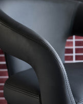 - Smooth black faux leather upholstery