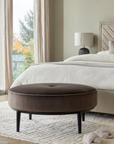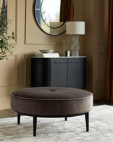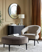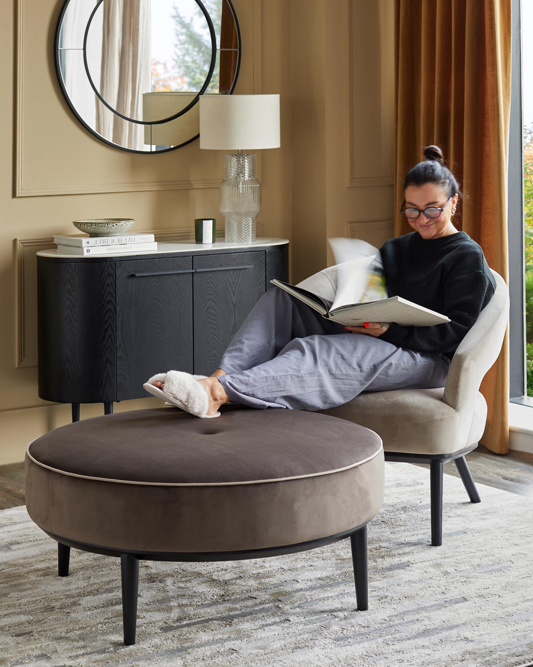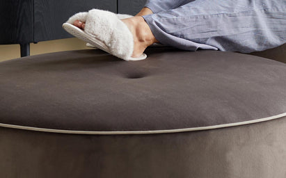 The Heath mocha velvet footstool brings sophisticated comfort to any space with its sumptuous recycled velvet upholstery and generous proportions. Perfect for putting your feet up after a long day or as extra seating when guests arrive, this exclusively designed piece pairs beautifully with the Heath occasional chairs to create a cohesive, inviting corner in your living room or bedroom.